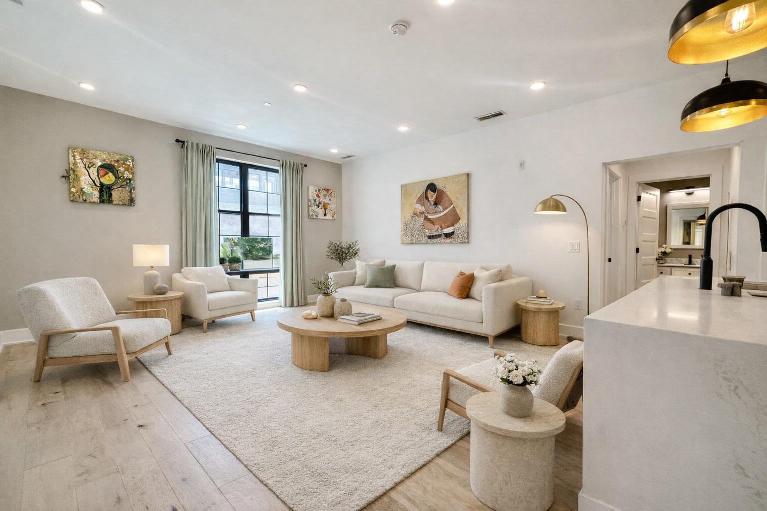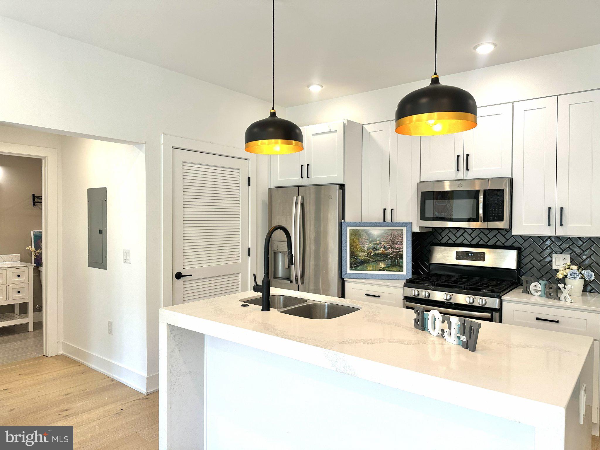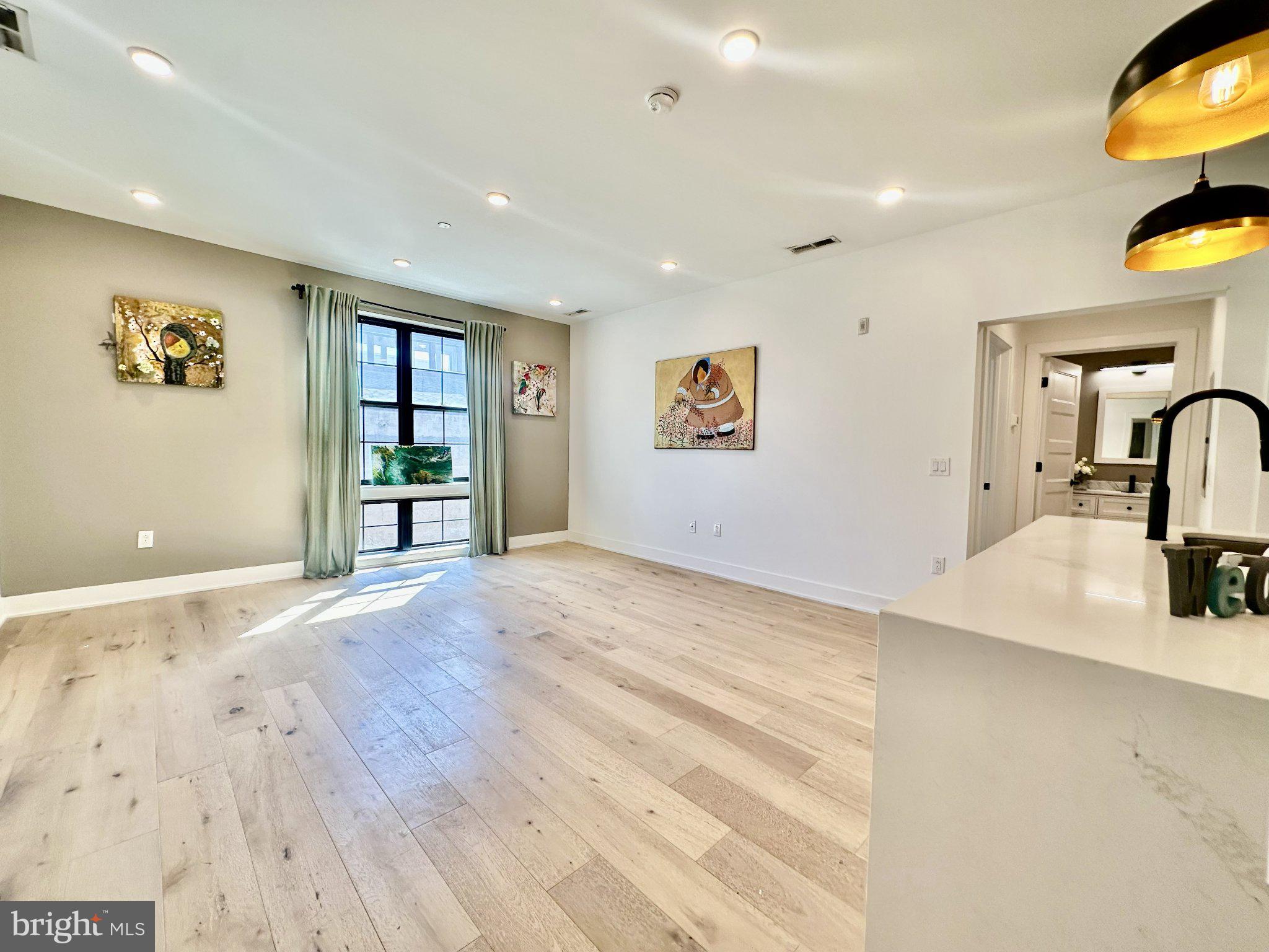 Welcome to this stunning 2-bedroom, 2-bathroom residence offering modern luxury living in the heart of Fishtown, ideally situated above the highly sought-after Middle Child Clubhouse. This sun-drenched home features a spacious open-concept layout with beautiful hardwood flooring throughout and oversized windows that fill the space with natural light. The chef’s kitchen is designed to impress, complete with stainless steel appliances, a gas range, quartz countertops, a stylish tile backsplash, and a center island with counter seating — perfect for both everyday living and entertaining. Thoughtfully designed for privacy, the two generously sized bedrooms are positioned on opposite sides of the unit. The primary suite offers a walk-in closet and a beautifully appointed ensuite bathroom, creating a comfortable and private retreat. A second full bathroom, finished with elegant marble tile, is conveniently located in the hallway. All furnitures in the living room and bedrooms are virtually staged for illustration purposes. Additional highlights include in-unit washer and dryer, key-coded secure entry, dedicated mail and package storage, basement bike storage, and trash and recycling chutes on each floor for added convenience. Optional off-site parking is available just two blocks away at 1400 N Howard St for approximately $250/month (subject to availability). Located in one of Philadelphia’s most vibrant neighborhoods, you are just steps from top-rated restaurants, cafes, nightlife, and easy public transportation — offering the ultimate urban lifestyle. This exceptional home offers a rare opportunity to enjoy stylish city living in a prime location, with approximately four years remaining on the tax abatement. As you tour the home, take in the exceptional artwork by local artist Alex Li. These pieces are available for purchase—inviting you to bring a touch of the home’s unique artistic character into your own life!